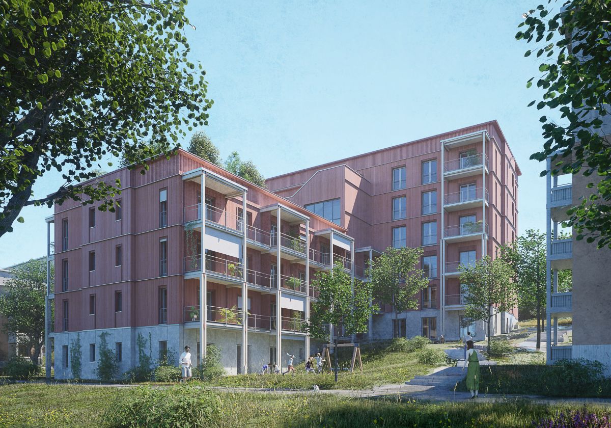 Durch geschickte Nutzung der Hanglage des Baugrundstücks können insgesamt rund vierhundert Wohnungen, ein Großteil davon öffentlich gefördert, errichtet werden. Damit wird das Quartier eine hohe Dichte aufweisen. Diese wird als Chance begriffen, um eine dem Ort angemessene bauliche Vielfalt und hohe stadträumliche Qualitäten zu schaffen. Angesichts des menschengemachten Klimawandels liegt es auf der Hand, dass sich der Lebenszyklus von Gebäuden von heute aus betrachtet erheblich verlängern muss. Eine Mischung der Wohnnutzung mit Gewerbe, Co-Working-Einheiten, Ateliers und Home-Office-Einheiten antizipiert gemeinsam mit der wandelbaren Architektur des Quartiers den künftigen Umbau. Eine auf dem zusammenhängenden Raster der Tiefgarage basierende Struktur schafft Flexibilität in der Nutzungsverteilung und einfache Erweiterungs- bzw. Verkleinerungsmöglichkeiten. Die Ausbildung des Strukturprinzips wird zum individuellen architektonischen Ausdruck, der auch an anderen Stellen, beispielsweise in den Pergolen, zutage tritt und so ein verbindendes Element für das ganze Quartier darstellt. Das so entstehende spannungsreiche Ensemble nimmt Bezüge zur baulichen Umgebung auf und besitzt die Fähigkeit, auch die bestehenden Gebäude zu integrieren.